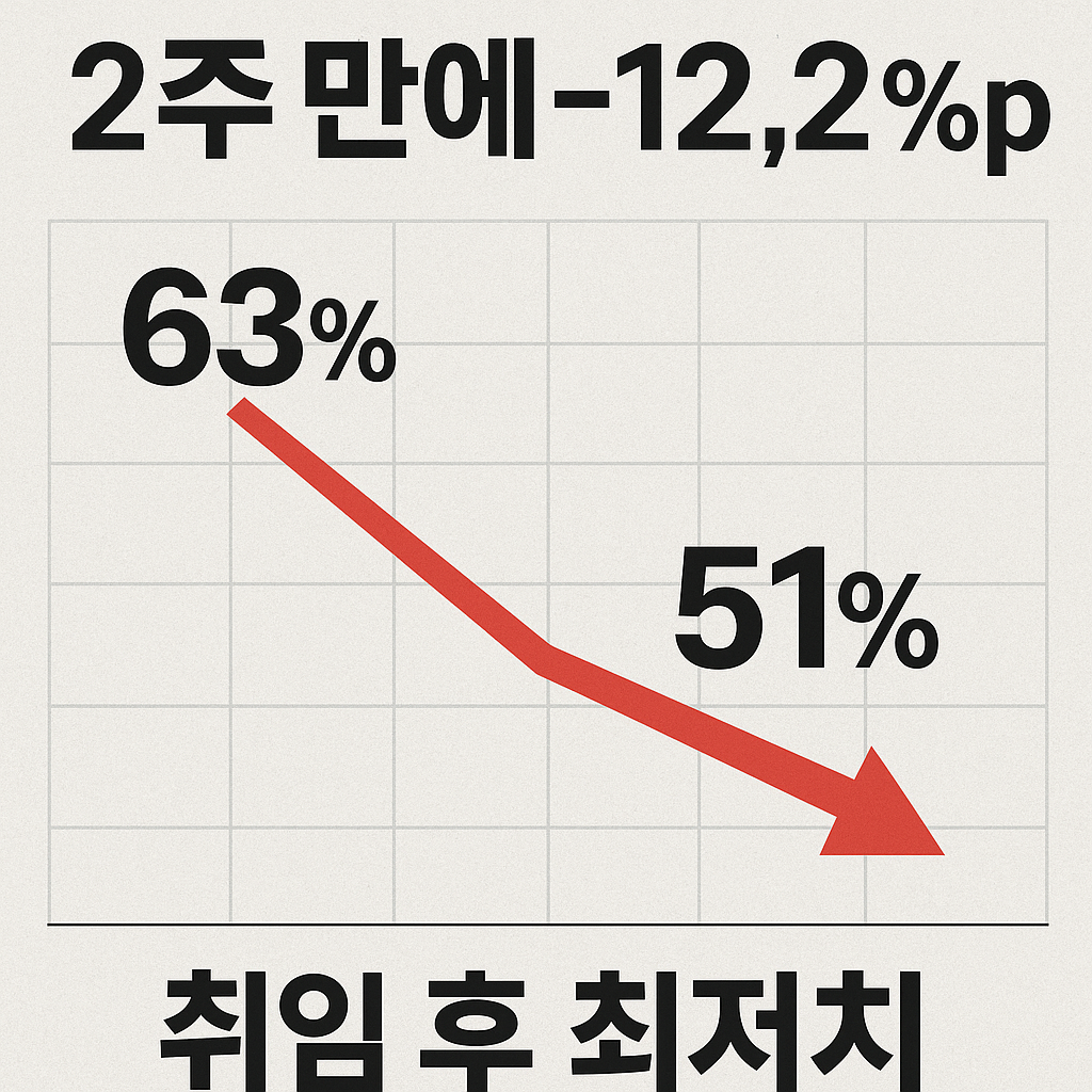 대통령 지지율이 63%에서 51.1%로 단숨에 추락하며, 취임 이후 가장 낮은 수치를 기록했습니다.